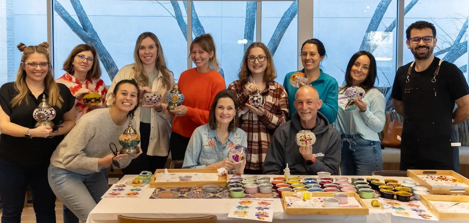 Create beautiful, handcrafted mosaic lamps with your friends, family, or colleagues in a fun and creative workshop designed just for your group.